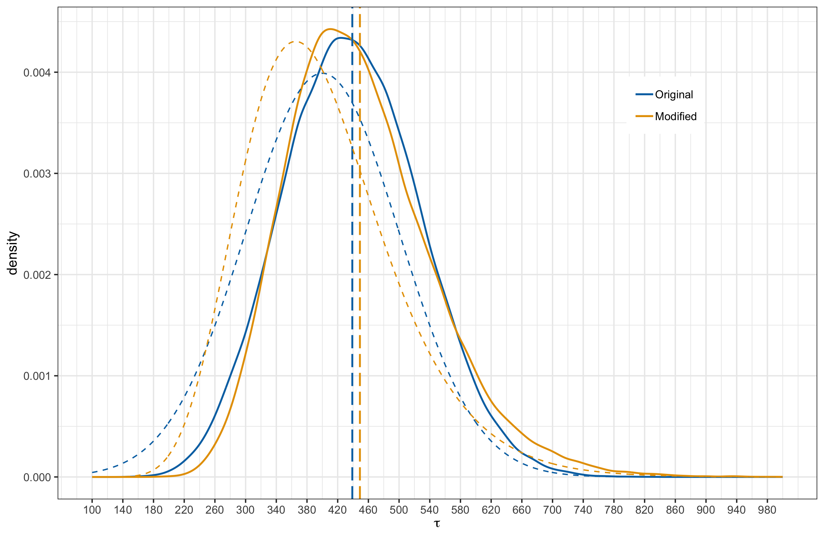 Recall that our original prior assignments for $K$ and $\tau$ are and , respectively. In this analysis I consider 3 alternative specifications.